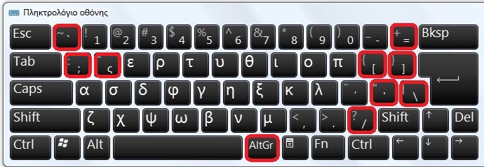Ἡ ἄνω τελεία βρίσκεται πάνω ἀπὸ τὸ τελικὸ σῖγμα καὶ ὄχι στὸ δύσχρηστο “SHIFT + AltGR + ]”.